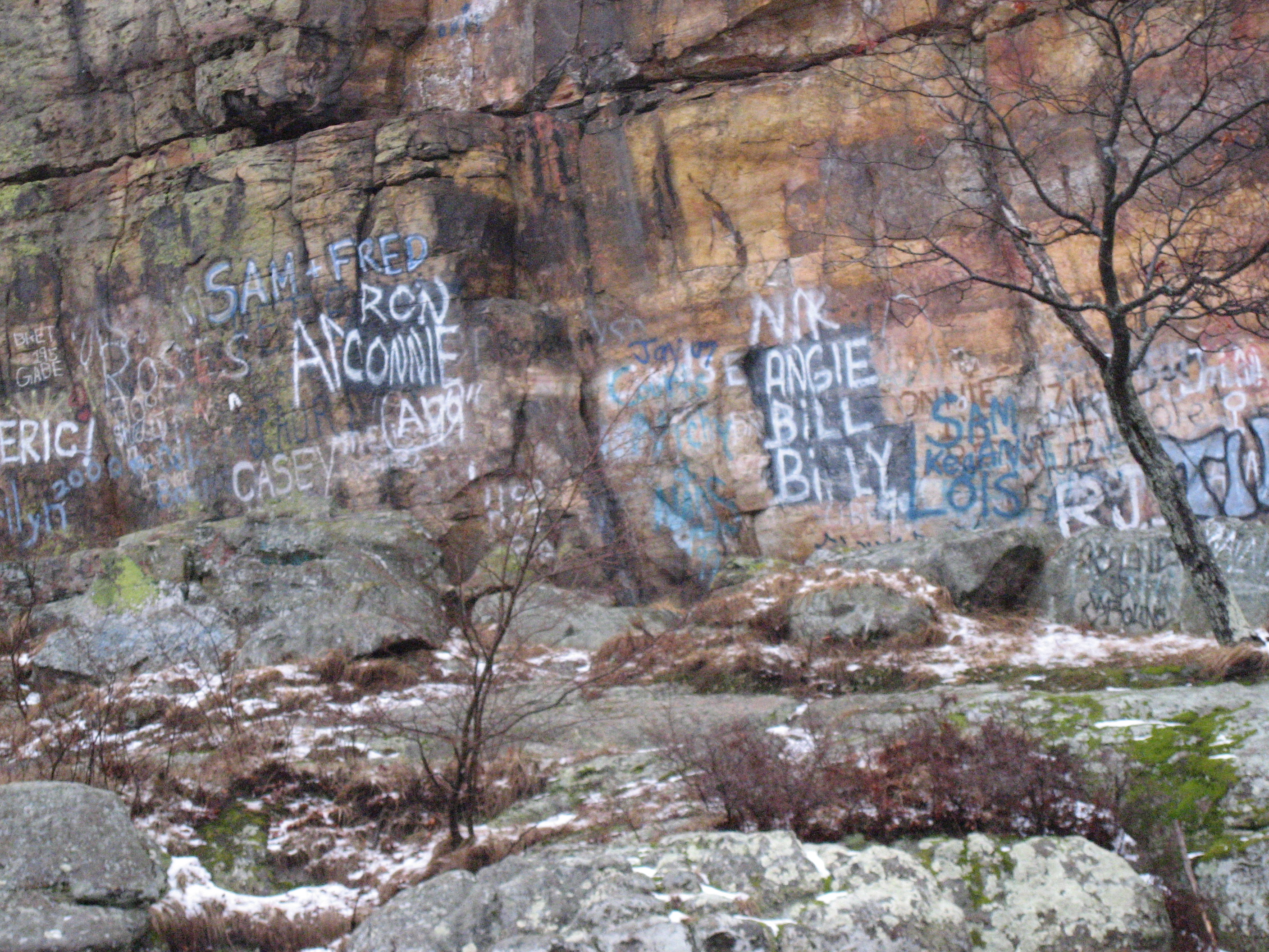 Is graffiti an art form or an act of vandalism?  Artist Terrance Lindall is quoted on Wikipedia as saying that graffiti can be a subversive form of expression that is revolutionary, adding, “People who are oppressed or suppressed need an outlet, so they write on walls–it’s free.”  Having grown up in a small town myself, not unlike this area, I suspect that the spray-painters who leave their names and initials are simply bored or want to somehow leave their mark on the world.